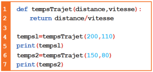 Exemple : Écriture d'un programme utilisant deux appels à une même fonction nommée « tempsTrajet »