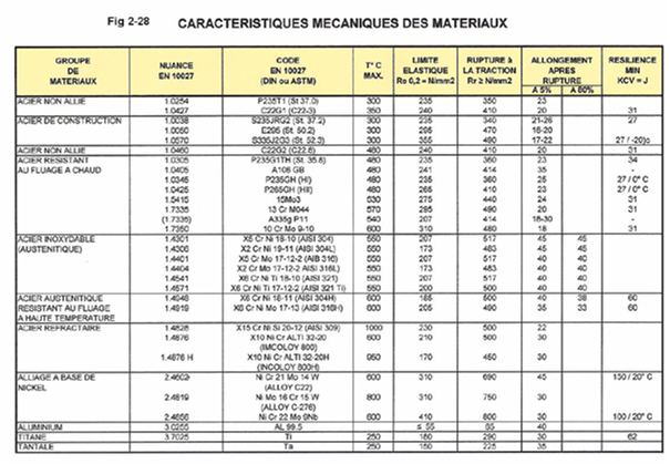 TABLE PRÉSENTANT LES ACIERS NON ALLIES OU FAIBLEMENT ALLIES :