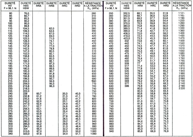 Fondamental : Correspondance entre mesures de dureté