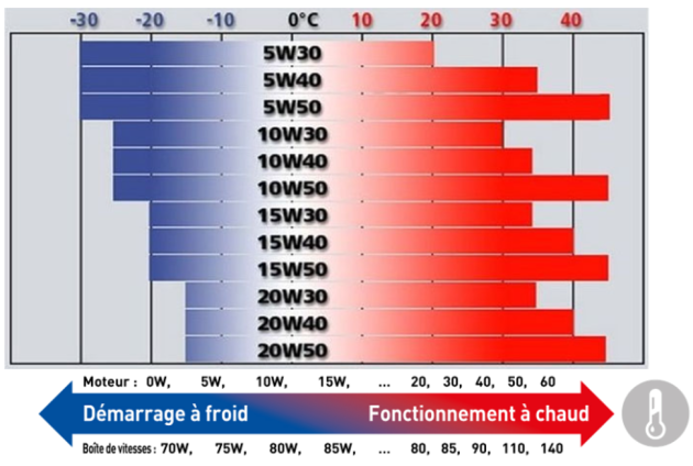 Viscosité SAE et plages de températures extérieures de bon fonctionnement
