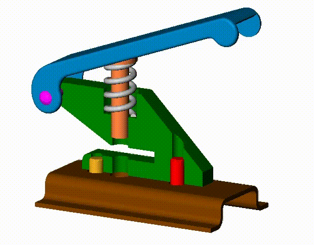 La perforatrice de bureau permet de perforer des feuilles de papier. L'action sur le levier 03 permet d'abaisser le poinçon 04. La feuille est perforée lorsque le bout du poinçon arrive sur la partie inférieure du corps