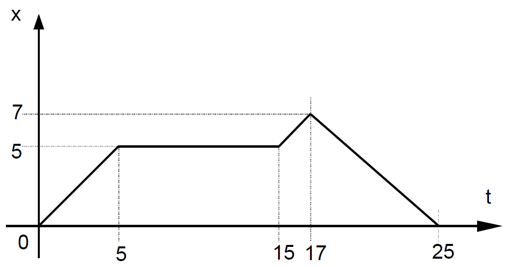 Le mouvement d'un Monte charge est défini par le graphe des espaces ci-contre. Question 2.1 - Effectuer l'analyse des 4 phases de ce mouvement en spécifiant les instants et le mouvement de cet élément. Question 2.2 - Déterminer les équations (espace et vitesse) de chaque phase. Les équations seront exprimées par rapport au repère absolu c'est à dire à t=0. |