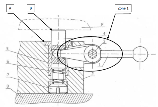 Éjecter des pièces P du montage d'usinage en exerçant une action sur le levier 1.