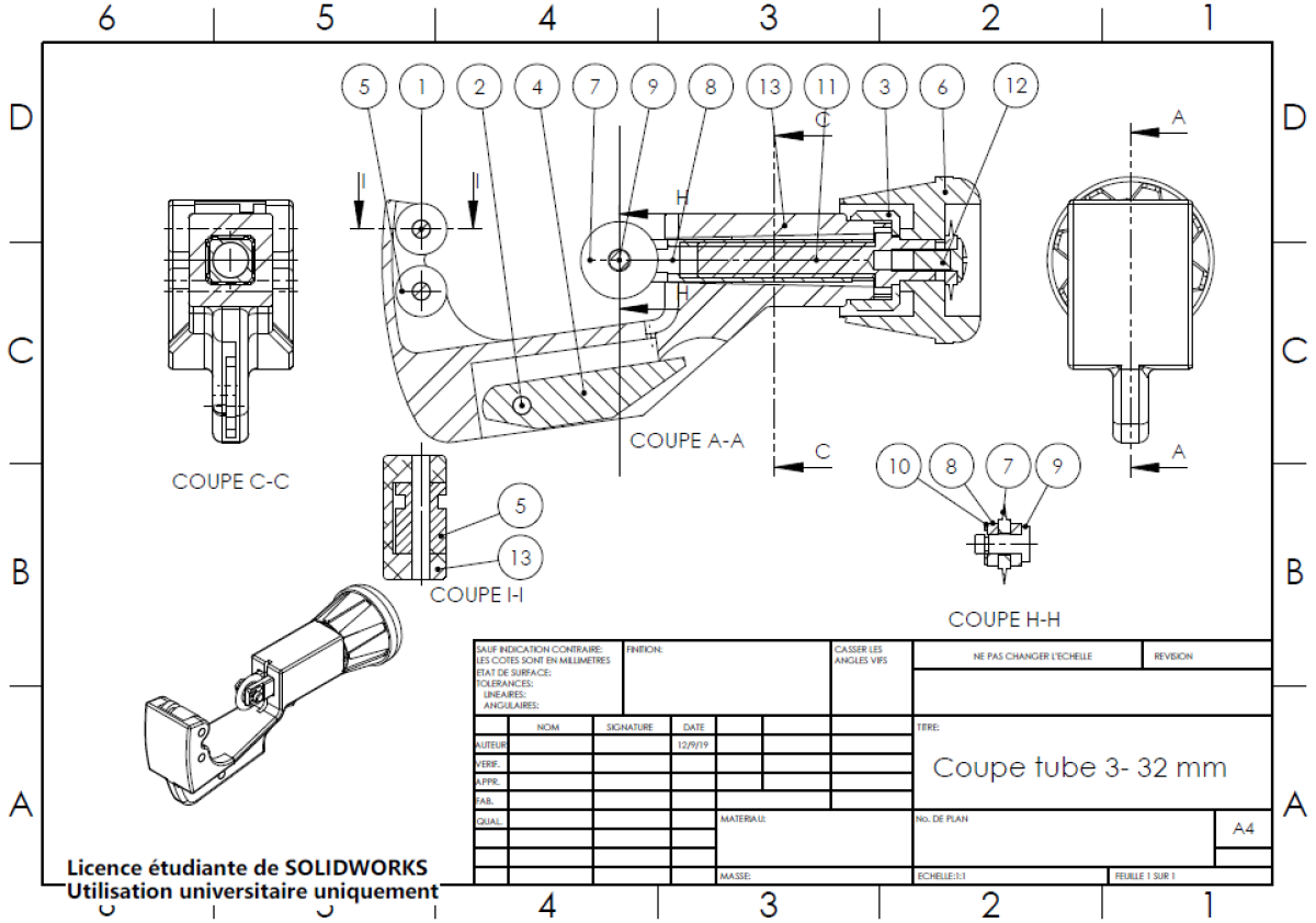 Plans du coupe tube